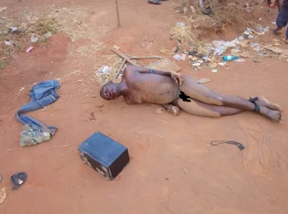 Photos: A man stripped naked and beaten to a pulp by mob in Delta State for Battery thief